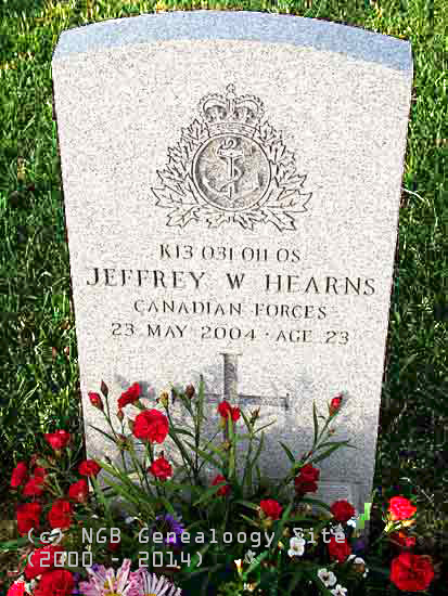 | K13 031 011 OS Jeffery W. Hearns Canadian Forces 23 May 2004 Age 23 |