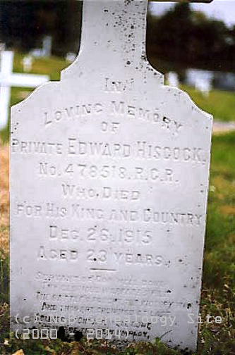 | 478518 ~ Private Edward Hiscock Royal Canadian Regiment 26 Dec 1915 Age 23 |