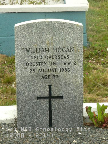 | William Hogan Newfoundland Overseas Forestry Unit WW II 29 Aug 1986 Age 77 |