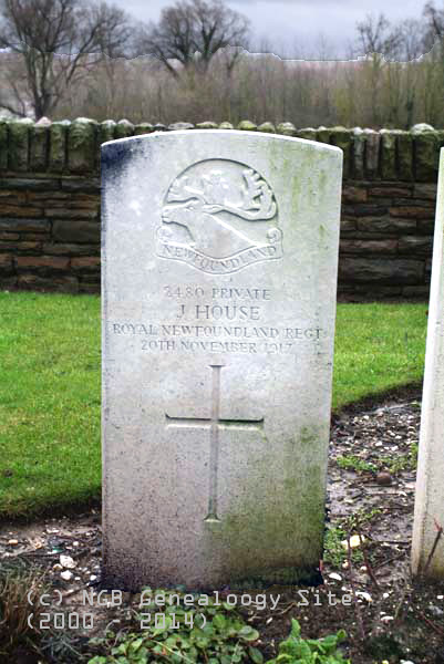 | Regt # 2480 Pte John House Royal Newfoundland Regiment 20th Nov 1917 |