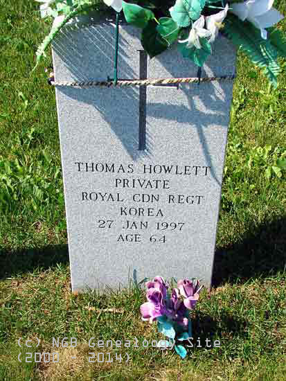 | Thomas Howlett Private - Royal Canadian Regiment Korea 27 Jan 1997 Age 64 |