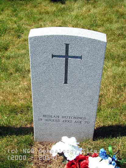 | Beulah Hutchings 19 August 1992 Age 70 |