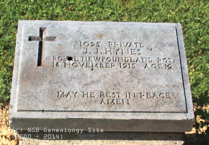 | 1095 Private J. J. Hynes Royal Newfoundland Regiment 18 Dec 1915 Age 19 ~ May He Rest In Peace |