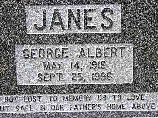 | George Albert Janes 14 May 1916 ~ 25 Sep 1996 Not Lost To Memory Or To Love But Safe In Our Father's Home Above |