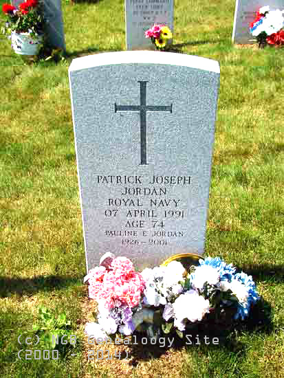 | Patrick Joseph Jordan Royal Navy 7 Apr 1991 Age 74 Pauline E. Jordan Adelaide Parsons 1926-2001 Age 75 |