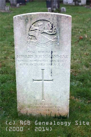 Sergeant Edward Joy~ MMM and BAR Royal Newfoundland Regiment 14 Oct 1918 Age 23 Plymouth [Efford] Cemetery United Kingdom |