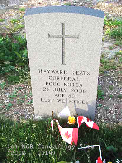 | Hayward Keats Corporal - R.C.O.C. Korea 26 Jul 2006 Age 83 Lest We Forget |