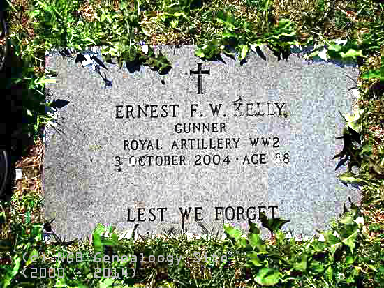| Ernest F.W. Kelly Gunner - Royal Artillery WW II 3 Oct 2004 Age 88 Lest We Forget |