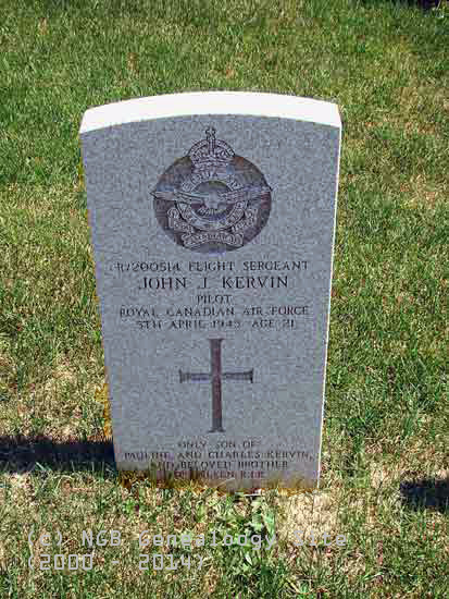 | R/200514 John J. Kervin Flight Sergeant/Pilot - R.C.A.F. WW II 5 Apr 1945? Age 21 |