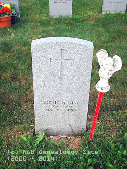 | Sophie A. King 1928-2002 Lest We Forget Age 74 |