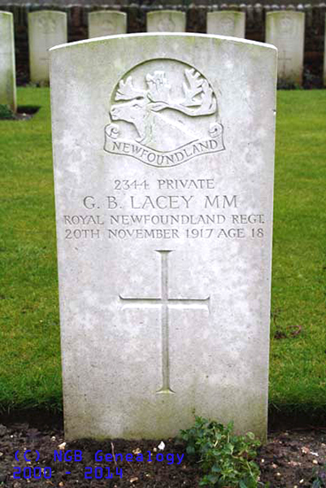| Regt # 2344 Pte George B. Lacey M.M. Royal Newfoundland Regiment 20th Nov 1917 Age 23 |