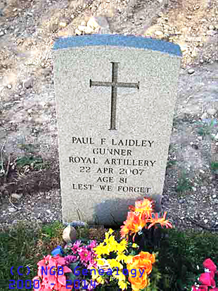 | Paul F. Laidley Gunner - Royal Artillery 22 Apr 2007 Age 81 Lest We Forget |