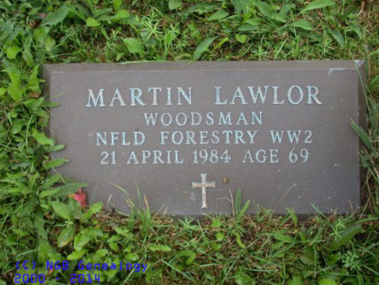 | Martin Lawlor Woodsman Newfoundland Overseas Forestry Unit WW II 21 Apr 1984 Age 69 |