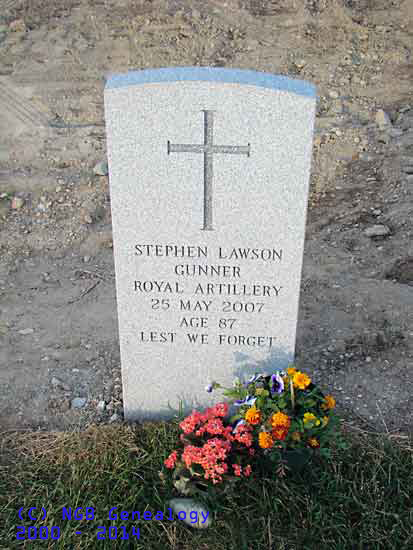 | Stephen Lawson Gunner - Royal Artillery 25 May 2007 Age 87 Lest We Forget |