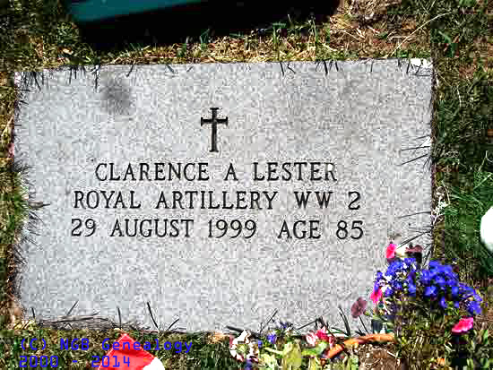 | Clarence A. Lester Royal Artillery WW II 29 Aug 1999 Age 85 |