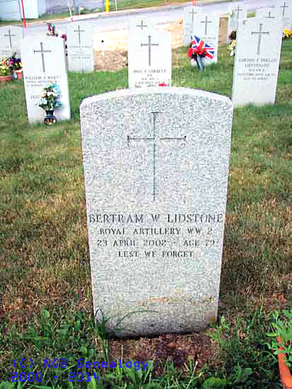 | Bertram W. Lidstone Royal Artillery WW II 23 Apr 2002 Age 79 Lest We Forget |