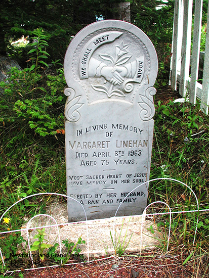 MARGARET LINEHAN Died: April 8th 1963 Aged: 75 Years Wife of Alban Linehan |