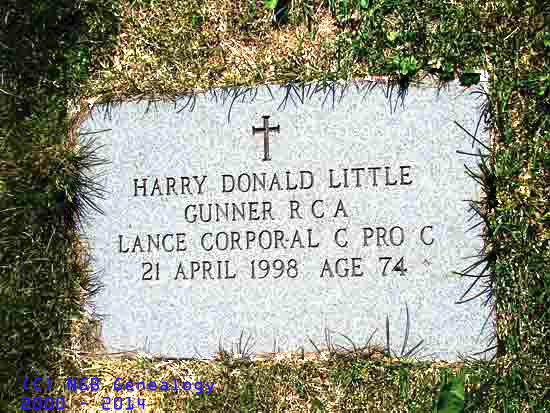 | Harry Donald Little Gunner - Royal Canadian Artillery Lance Corporal - C Pro C 21 Apr 1998 Age 74 |