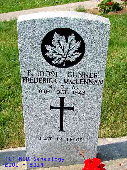 | F10091 Frederick MacLennan Gunner - R.C.A. 8 Oct 1943 Rest In Peace |
