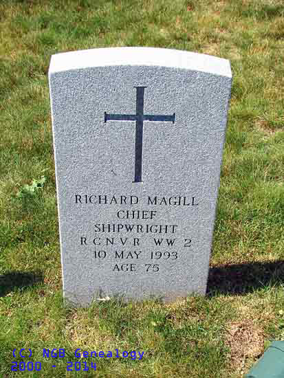 | Richard Magill Chief Shipwright - R.C.N.V.R. WW II 10 May 1993 Age 75 |