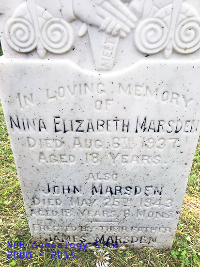 | NINA ELIZABETH MARSDEN Died: Aug 6th 1937 Aged: 18 Years JOHN MARSDEN Died: May 25th 1943 Aged: 18 Years 8 Months |