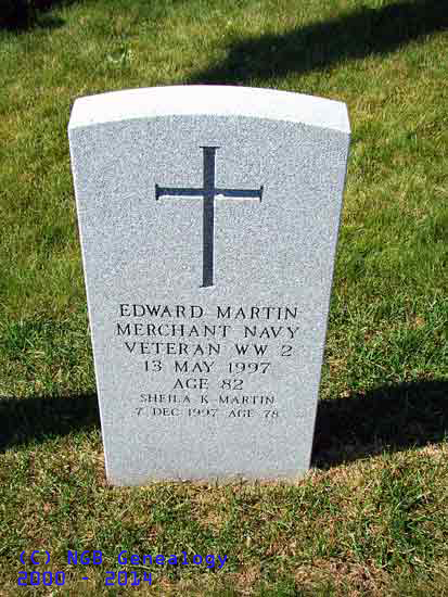 | Edward Martin Merchant Navy Veteran WW II 13 May 1997 Age 82 Sheila K. Martin 7 Dec 1997 Age 78 |
