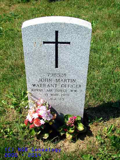 | 798528 John Martin Warrant Officer - R.A.F. WW II 13 May 1982 Age 63 |