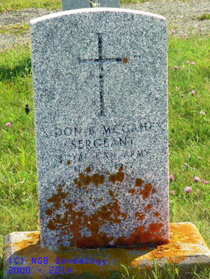 | Don ? B. McCahey Sergeant Royal Canadian Army 17 Dec 1977 Age 60 or 80 |