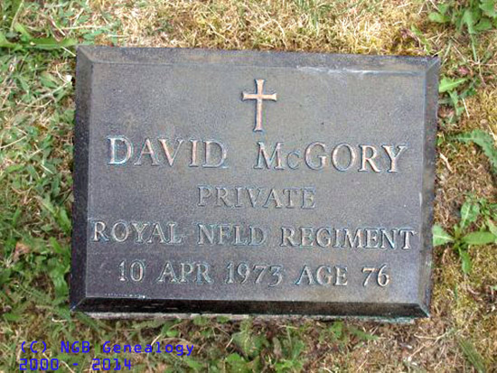 | David McGory Private Royal Newfoundland Regiment 10 Apr 1973 Age 76 |