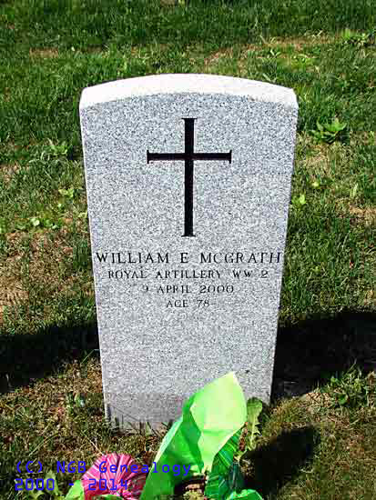 | William E. McGrath Royal Artillery WW II 9 Apr 2000 Age 78 |