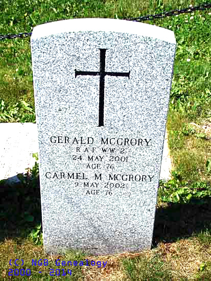 | Gerald McGrory Royal Air Force WW II 24 May 2002 Age 76 |