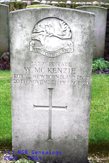 | Regt #3227 Pte William McKenzie Royal Newfoundland Regiment 20th Nov 1917 Age 20 |