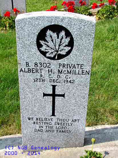| B8302 Albert H. McMillen Private - R.C.O.C. 12 Dec 1942 We Believe Thou Art Resting Sweetly In The Lord Dad and Family |