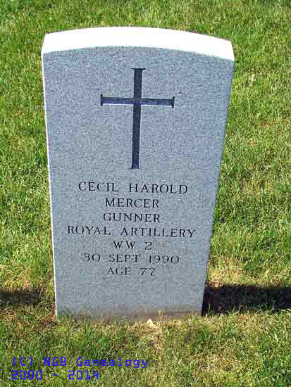 | Cecil Harold Mercer Gunner - Royal Artillery WW II 30 Sep 1990 Age 77 |
