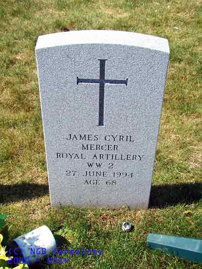 | James Cyril Mercer Royal Artillery WW II 27 Jun 1994 Age 68 |