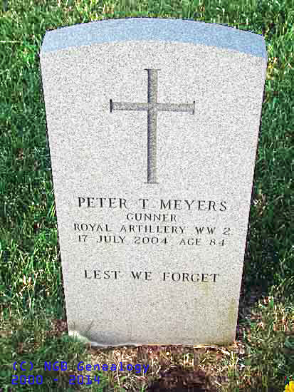 | Peter T. Meyers Gunner - Royal Artillery WW II 17 Jul 2004 Age 84 Lest We Forget |