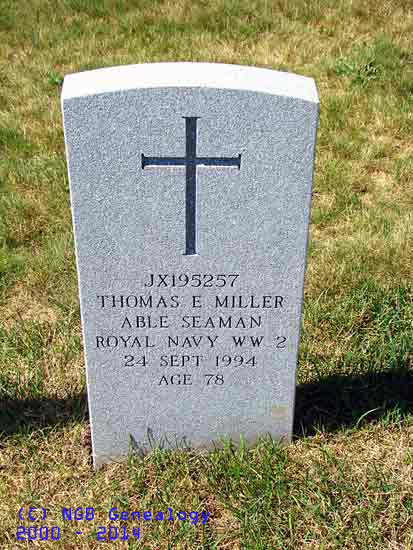 | JX195257 Thomas E. Miller Able Seaman - Royal Navy WW II 24 Sep 1994 Age 78 |