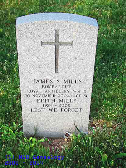 | James S. Mills Bombardier - Royal Artillery WW II 20 Nov 2004 Age 86 Edith Mills 1924-2002 Lest We Forget |