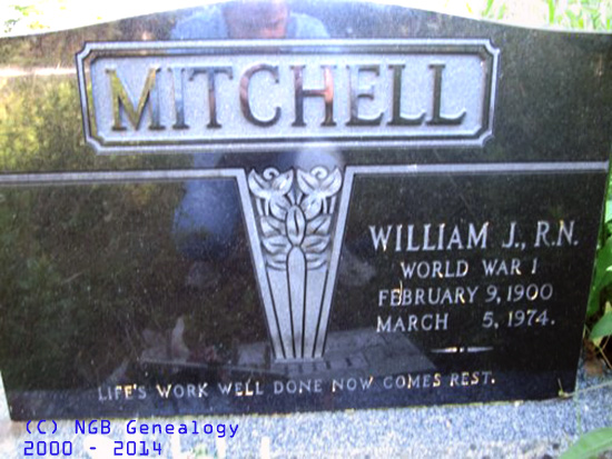 | William J. Mitchell Royal Navy WW 1 February 9, 1900 March 5, 1974 ~ Life's Work Well Done, Now Comes Rest |