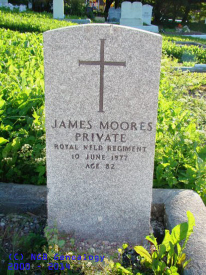 | James Moores Private Royal Newfoundland Regiment 10 June 1977 Age 82 |
