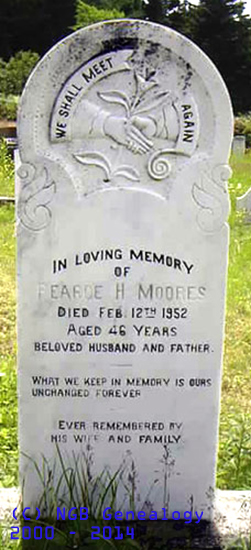 In loving memory of Pearce H. Moores Died Feb 12th 1952 Aged 46 years beloved husband and father What we keep in memory is ours unchanged forever Ever remembered by his wife and family |