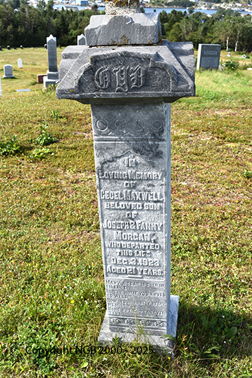 MAXWELL MORGAN Died: Dec 3, 1923 Aged: 21 Years Beloved Son of Joseph & Fanny Morgan |