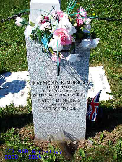 | Raymond F. Morris Lieutenant - Newfoundland Regiment WW II 26 Feb 2004 Age 84 Daisy M. Morris 1918-2001 Lest We Forget |