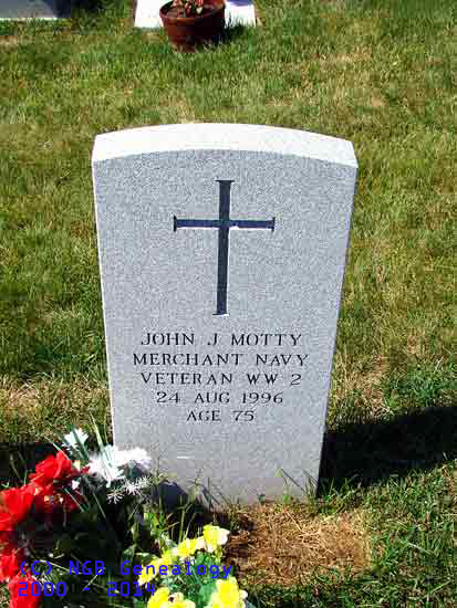 | John J. Motty Merchant Navy Veteran WW II 24 Aug 1996 Age 75 |
