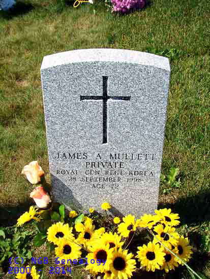 | James A. Mullett Private - Royal Canadian Regiment Korea 28 Sep 1998 Age 72 |