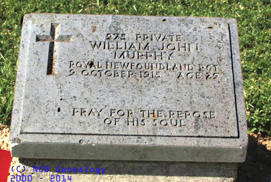 | 975 Private William John Murphy Royal Newfoundland Regiment 9 Oct 1915 Age 29 ~ Pray For The Repose Of His Soul |