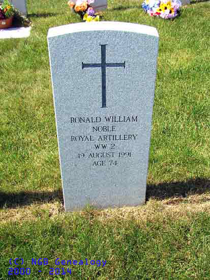 | Ronald William Noble Royal Artillery WW II 19 Aug 1991 Age 74 |