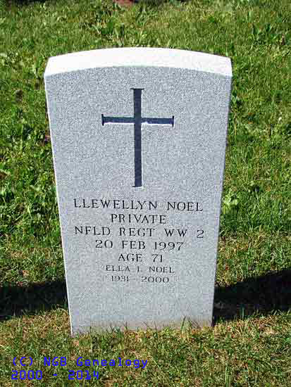 | Llewellyn Noel Private - Newfoundland Regiment WW II 20 Feb 1997 Age 71 Ella I. Noel 1931-2000 |