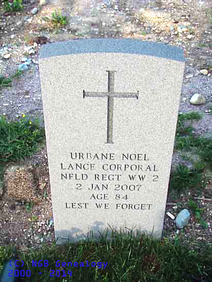 | Urbane Noel Lance Corporal - Newfoundland Regiment WW II 2 Jan 2007 Age 84 Lest We Forget |