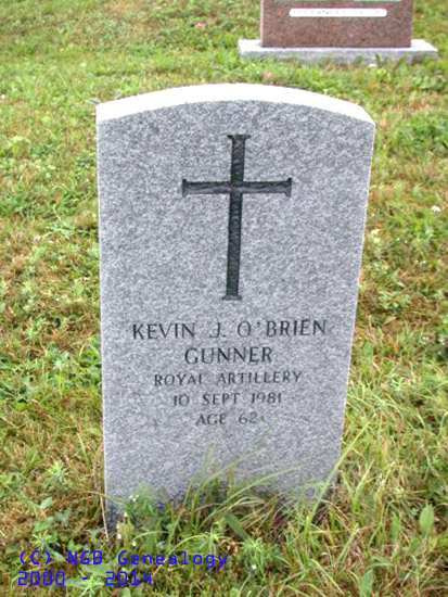 | Kevin J. Obrien Gunner Royal Artillery 10 Sep 1981 Age 62 |